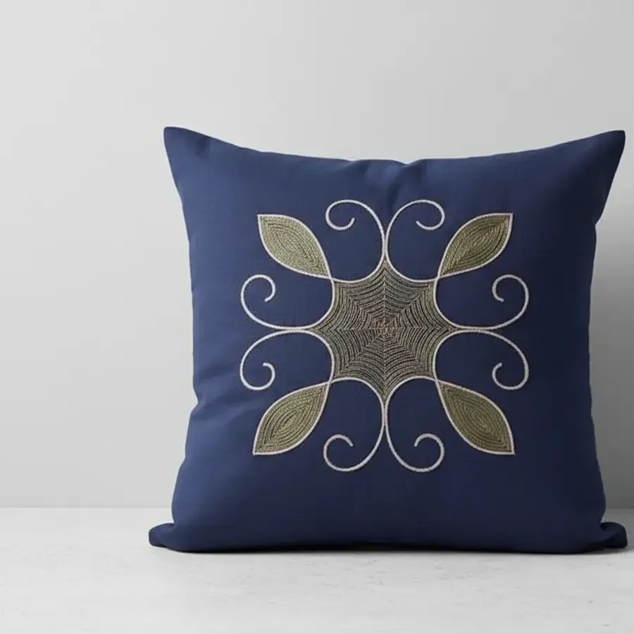 This elegant Blue Cushion Cover from the home accessories category features intricate Ari work embroidery on Mangalagiri cotton, showcasing traditional craftsmanship. Made from soft and durable Mangalagiri fabric, it offers comfort and a refined finish. The rich blue color adds a vibrant and stylish touch, perfect for enhancing any living space.