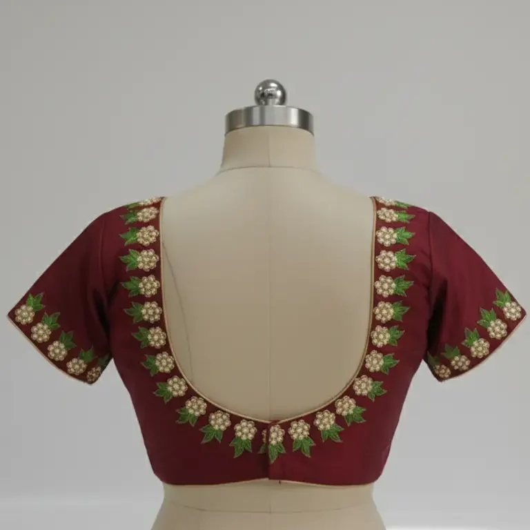 This elegant Maroon Blouse Material from the fashion category is adorned with intricate Ari work embroidery, reflecting traditional craftsmanship. Crafted from soft Mangalagiri cotton, it ensures comfort and a breathable fit. The deep maroon color adds a rich and sophisticated touch, perfect for creating a stylish blouse for festive or special occasions.