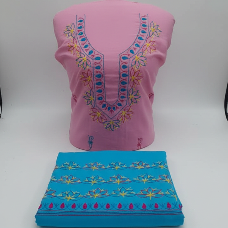 This trendy Pink & Blue Co-ord Set from the fashion category is enhanced with delicate embroidery work, giving it a chic yet elegant touch. Crafted in comfortable cotton fabric, it is perfect for all-day wear. The combination of pink and blue hues adds a fresh and stylish vibe, making it ideal for casual outings or semi-formal occasions.